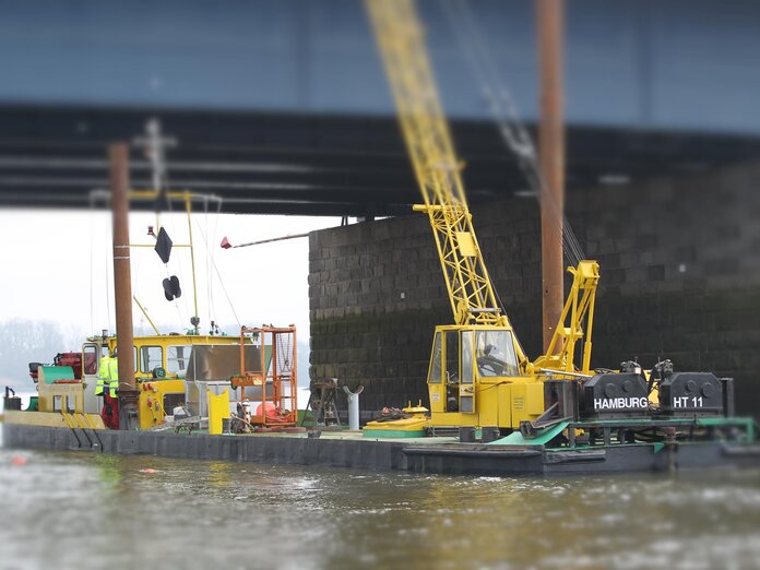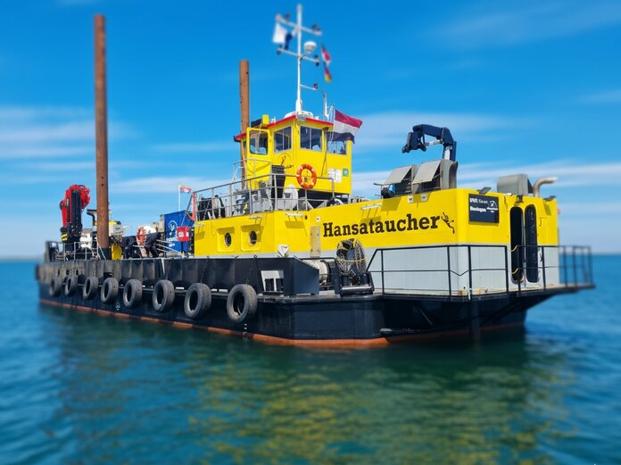 Hansataucher does not use standard solutions – instead, we use special vessels that are precisely tailored to the task at hand. Whether lifting a heavy object out of the water, supporting a diving mission, or performing precision work on the water, our fleet is ideally equipped for the job.